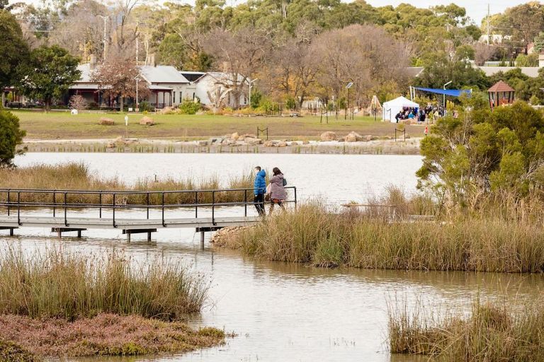 The crown jewel of Rowville’s public space is Stamford Park — a site whose history stretches back to the Row family’s 1882 homestead and which has been transformed into one of Knox’s finest parks. A $13.5 million redevelopment opened in 2024, creating 38 hectares of accessible parkland with expanded wetlands, 3.5 kilometres of walking and cycling paths, a playground, viewing decks and a lookout tower, boardwalks, a yarning circle, public art and a purpose-built platypus habitat. The homestead itself, a magnificent example of 19th-century Victorian architecture with Gothic gables, fretted barge boards and five metre high ceilings, has been lovingly restored and reopened as a restaurant. It serves breakfast, lunch and dinner seven days a week, with the verandah overlooking the gardens and wetlands particularly sought after.